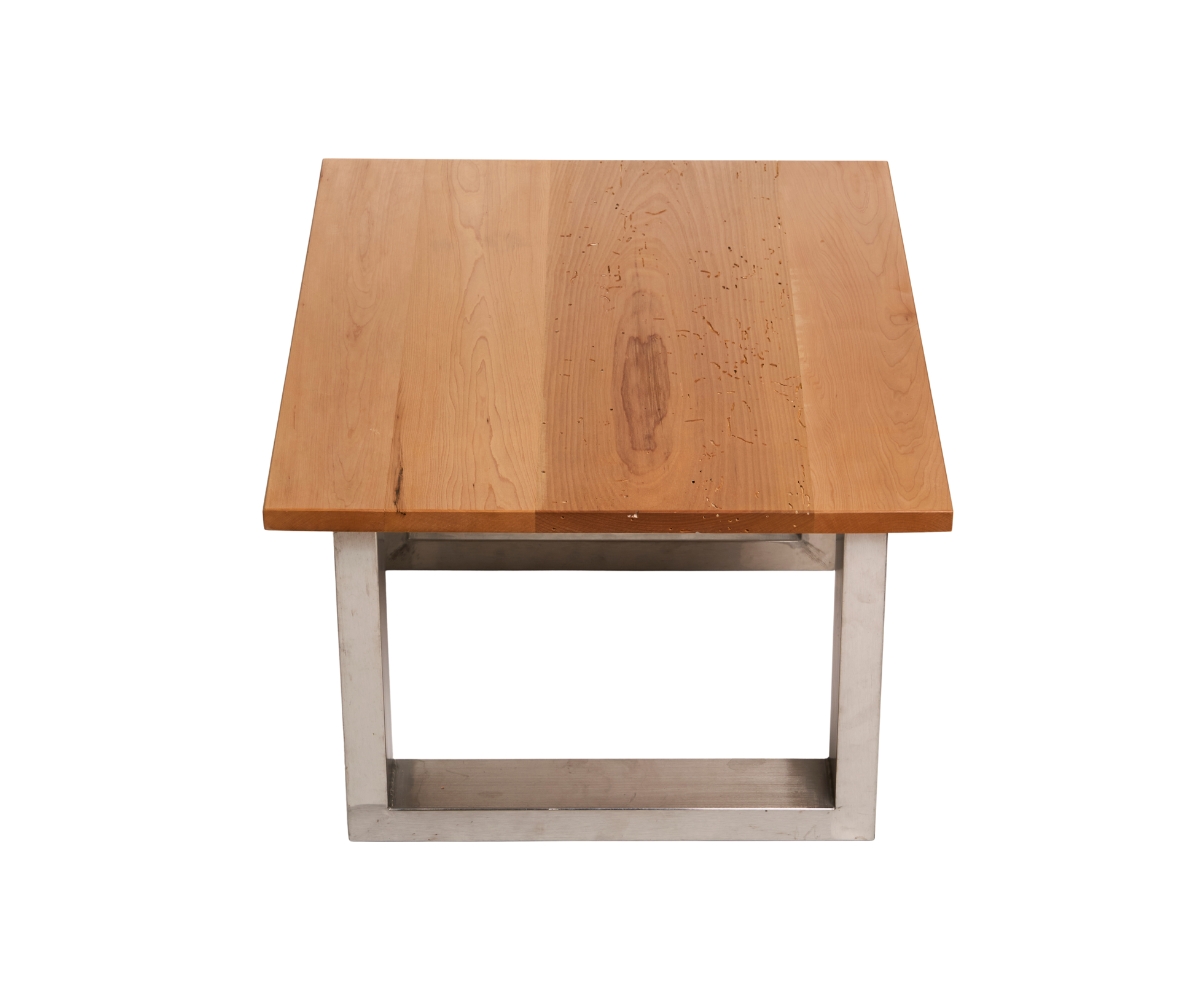 This sugar maple and white birch coffee table features many insect holes creating a beautiful design. This coffee table is part of our 2025 mixed species hardwood tables collection. The 2025 edition tables are made using upcycled, refurbished table legs that are 35-50 years old.